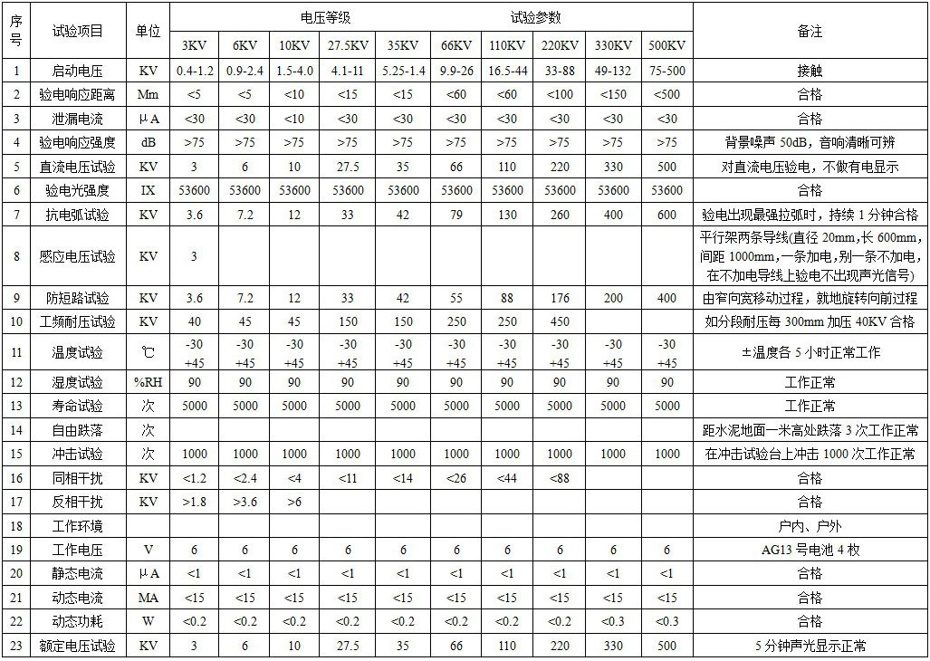 三、驗電器技術(shù)指標(biāo)