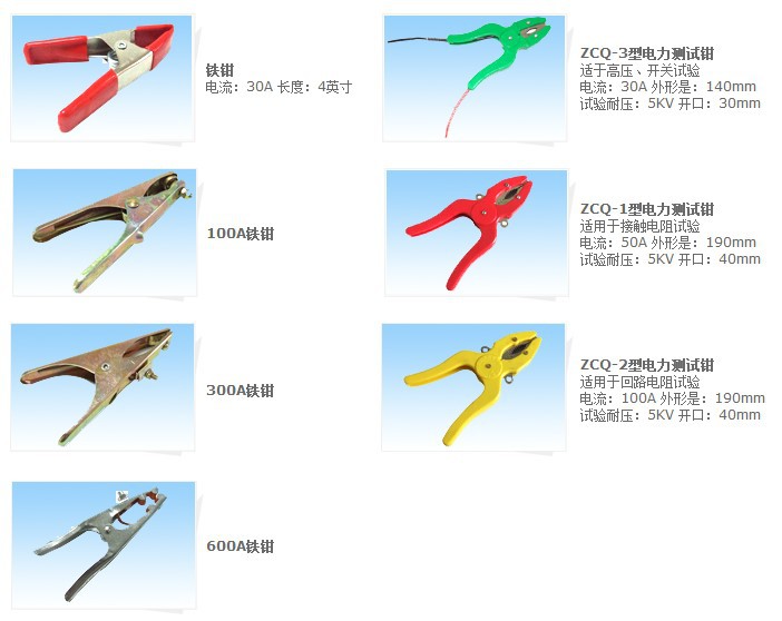 ZCQ系列測試鉗主要適用與測量接觸電阻,回路電阻等,是高壓斷路器,變壓器等產(chǎn)品的必備測試工具。測試鉗主要由鉗架,鉗口,彈簧,插孔等組成,鉗架采用高強(qiáng)度工程塑料壓鑄,鉗口采用銅板沖制成型。鉗口齒夾鋒利,能夠刺穿導(dǎo)體氧化層,圓弧形鉗口專用于高壓斷路器梅花觸頭的電阻測量。可接長線連接儀器,便于測量。