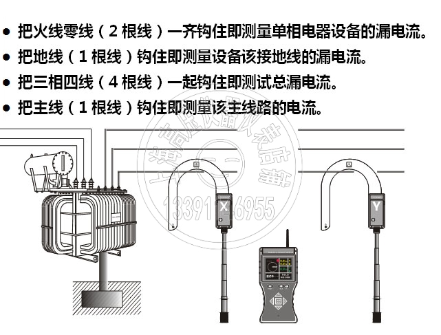 320B型的X探測器具有高低壓電流、漏電流測試功能,電流測量范圍為0~20000A,同時滿足核相、電流、漏電流、相位、相序、驗電測試;也可以用于高壓線纜漏電巡查:將具有測試電流功能的X探測器鉤在電纜上,沿線巡查,若接收器由有較大電流顯示突變?yōu)楹苄‰娏骰驘o電流顯示,該點即為電纜漏電點。